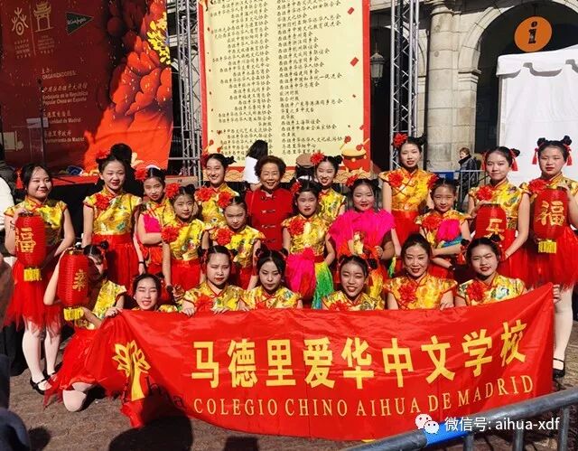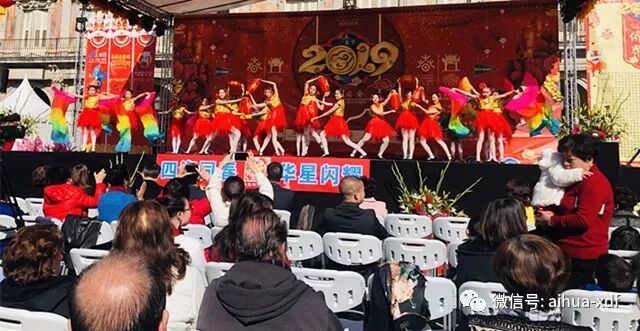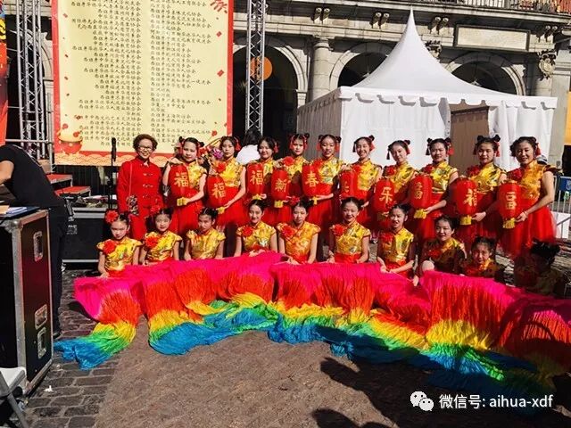 3、二月中旬,爱华少儿艺术团的舞蹈‘“张灯结彩”、“猪年大吉”以及芭蕾舞“宝贝宝贝”在马德里市中心的Plaza Mayor和来自“四海同春”艺术团的艺术家们同台演出,向当地的民众展示了中国春节的浓郁气氛,共度欢乐春节。