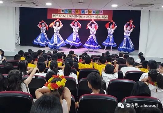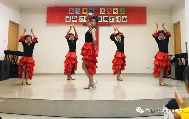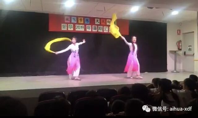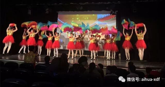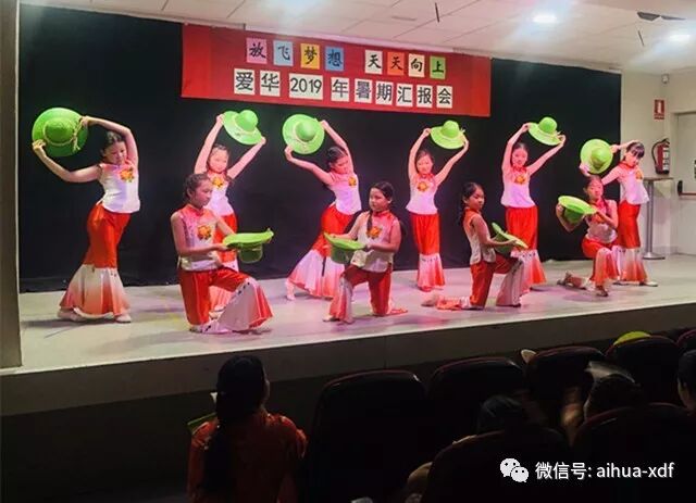 6、八月底,爱华少儿艺术团的“一粒沙子”、“采茶舞”、“风筝误”和“斗牛舞”等舞蹈参加了Usera校区暑假班汇报演出。