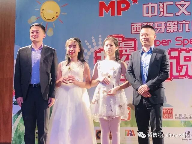 7、十一月下旬,今年爱华Usera校区的四位同学和San Fermin校区的三位同学参加了西班牙第六届“超级演说家”比赛。徐妮妮同学和董姝亚两位同学分别荣获少儿组和少年组冠军;罗梓珺同学荣获“网络人气奖“;薛静怡同学获得了评委颁发的“评委特别奖”;叶锦翔、张睿妍和王祎俊同学荣获优秀奖;爱华中文学校荣获“最佳组织奖”。