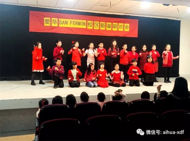 2、 二月中旬,San Fermin校区师生举行新春联欢会。同学们纷纷登上舞台展示自己迎接中国春节的喜悦心情,用朗诵、舞蹈、歌唱等形式表达对传统节日的喜爱。