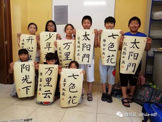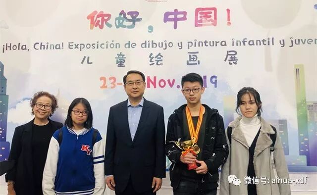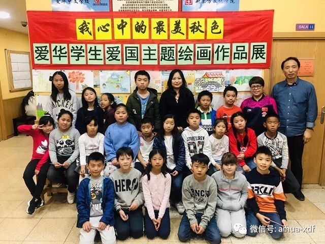 8、十一月下旬,爱华选送了63幅学生绘画作品参加了由中国驻西班牙大使馆举办的“你好,中国!”儿童绘画展览。张帅迪同学的“寻根之旅”夏令营画作获得金奖,孙佳佳等13七位同学的作品获得优秀奖。