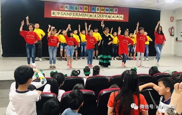 5、六月底,爱华少儿艺术团参加了San Fermin校区的期末结业典礼,共献演了拉丁舞蹈“牛仔恰恰”和蒙古舞蹈“草原欢歌”。两周后,爱华少儿艺术团的“草原欢歌”、“斗牛舞”、“采茶舞”等舞蹈在Usera校区的结业典礼上登台表演。