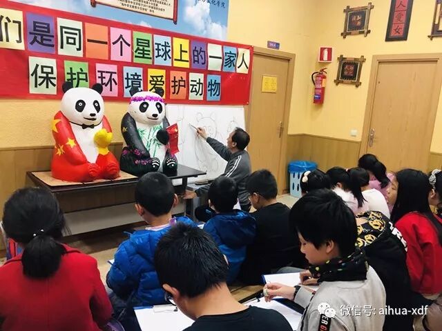 5、 三月,爱华中文学校作为唯一一所华人学校入选马德里动物园举办的画熊猫展览,学生们自己动手、自发创意为中国国宝熊猫雕塑画上有趣的图案和色彩。