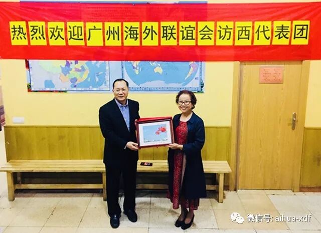 10、 十月上旬,广州市委常委、统战部卢一先部长率广州海外联谊会访西代表团来到爱华中文学校参观访问。卢部长在参观了学校后和黄小捷校长互赠礼物留念。