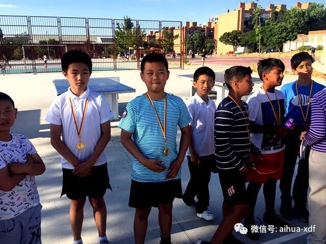 3、 六月中旬,应马德里Usera市政府的邀请,爱华中文学校乒乓球队的罗灼军、吴得凯、吴得涵、毛靖豪和毛靖阳等五名小将在国政华老师的带领下,参加了由马德里Usera市政府举办的移民文化节学生乒乓球邀请赛,毛靖豪和吴得凯各荣获一枚金牌,团队荣获了一个奖杯。