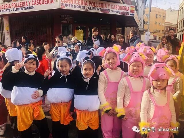 3、 二月,Usera校区部分学生装扮成熊猫、小猪等参加一年一度的“欢乐春节”彩妆游行活动,中高班同学做舞狮表演,吸引了好奇的西班牙群众的目光。