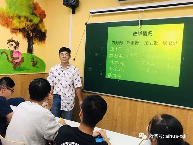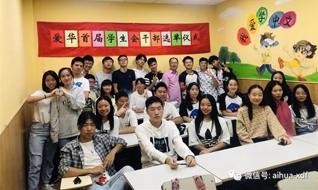 9、 十月初,爱华中文学校首届学生会成立,主席:潘彬至;副主席:陈雅欣;活动部部长:郭宇、朱榕、柴艺萱;宣传部部长:戴浩宇、王小丫;策划部部长:崔策、董姝亚;秘书处部长:戴昕格、叶锦翔、白容炜、苗雨彤。学生会以团结、奋斗、求实、进取为宗旨,让每一位成员都度过一个最值得回忆的学习时代。