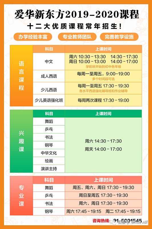 回复数字”8″:西班牙爱华中文学校/新东方文化学院招生通告