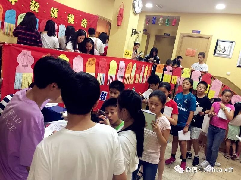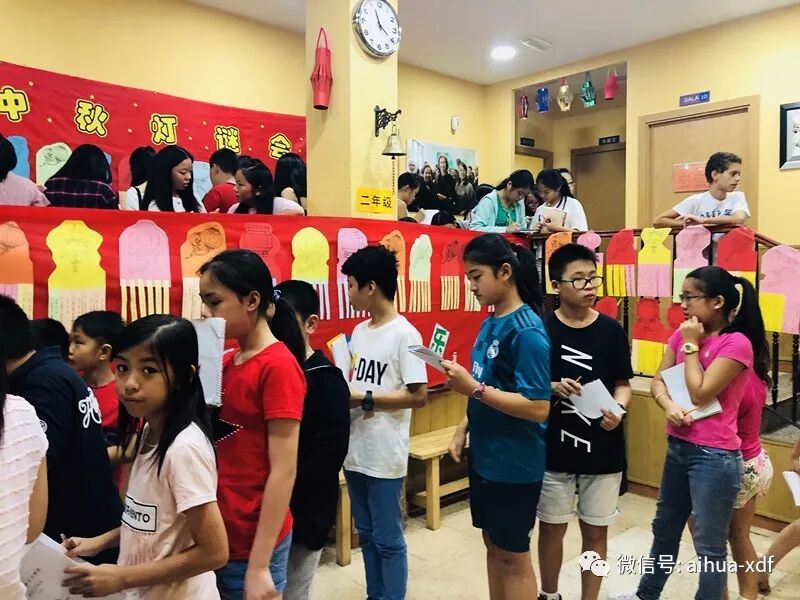令老师们意想不到的是,爱华中秋灯谜会活动竟然会受到孩子们如此醉心的热捧。两天之内爱华USERA校区和SAN FERMIN校区共举行了12个场次,从一年级下册班开始,所有学生都参与到了这场喜庆的中秋猜谜活动。灯谜会的每一个场面,都宛如一场水泄不通的中秋庙会,连空气里都弥漫着中国中秋时节的团圆喜庆,同时弥漫着香甜月饼的浓浓滋味……