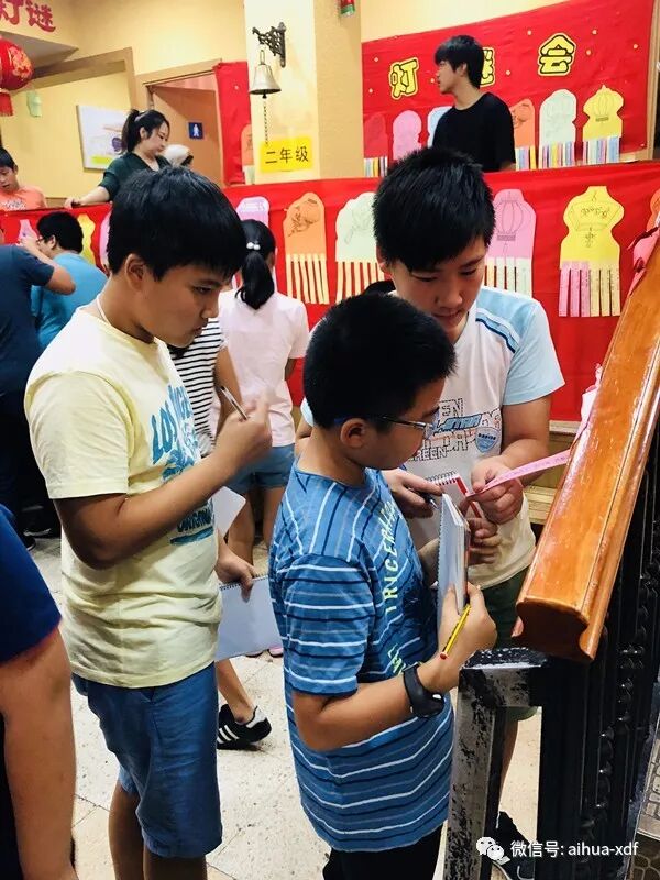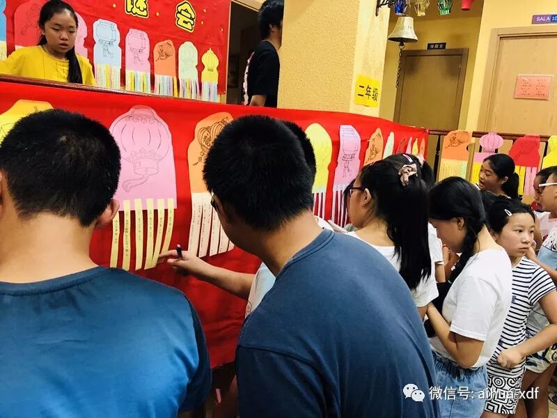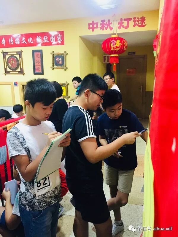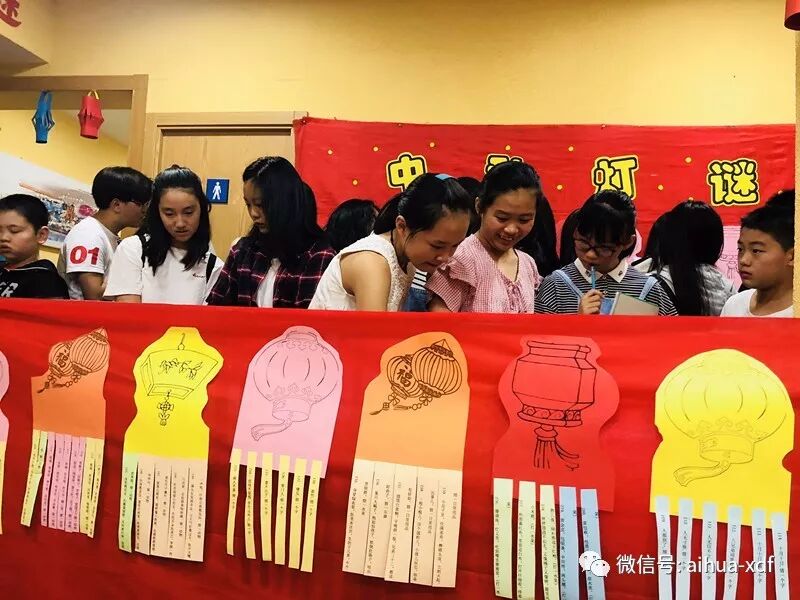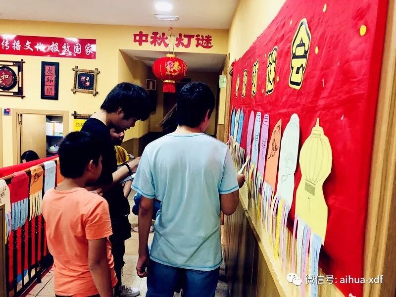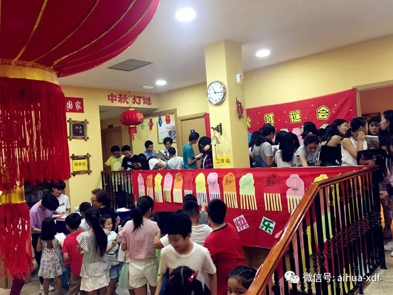 9月22日和23日,分别是周六和周日,当同学们一来到学校后,就被眼前这个极具中国味的浓郁气氛给包围住了。大红灯笼和各色彩色小灯笼高高挂起,各色灯笼谜语到处可见,走廊上,大厅里,墙壁上,前后左右都挂满了密密麻麻的谜语。