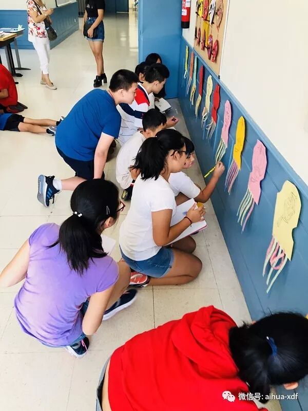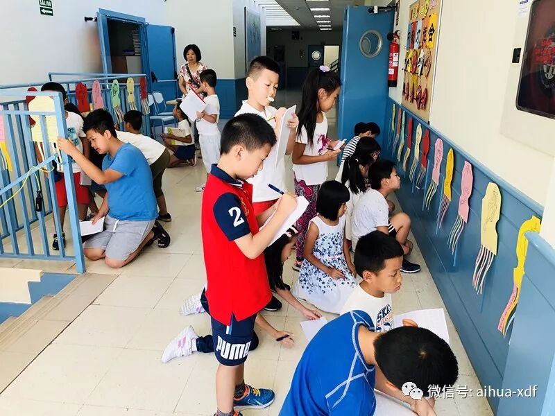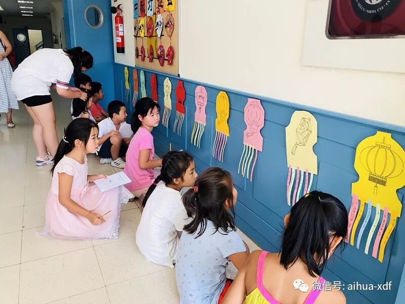 为了更好地衬托出浓重的中秋节日气氛,我们一开学就计划给学生营造一个极具浓郁氛围的中秋节,给海外华裔孩子们一个意外的惊喜。于是,早在两周前,老师们就开始为灯谜会做准备了。制作彩色纸灯笼,写横幅标语,找各类谜语……彩色的纸灯笼就是绘画大班的学生们在老师的辅导下做的。