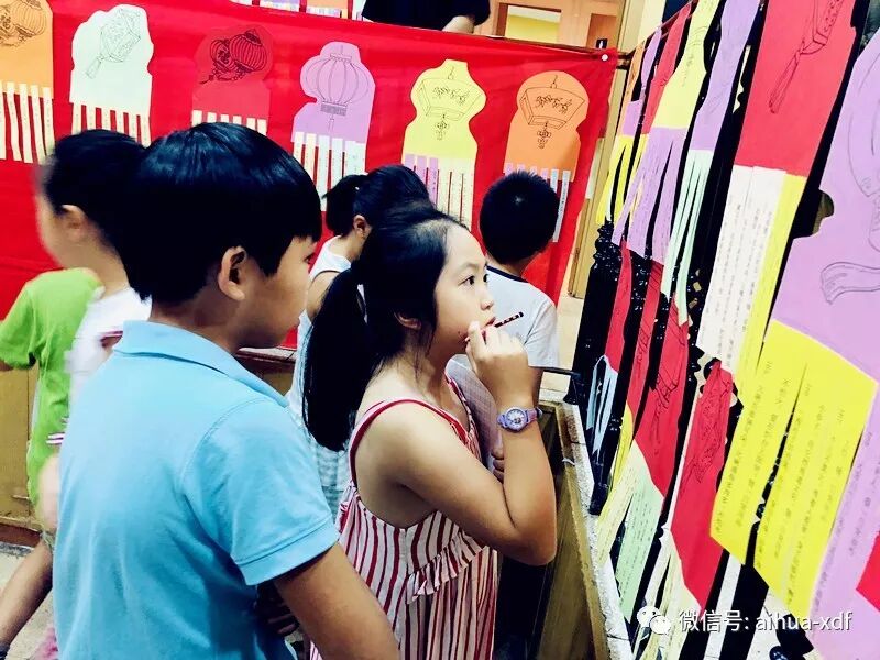 近千条精心设计的汉字谜语和五花八门的谜底让学生们个个欲罢不能。其实,打开孩子们强烈好奇心的不仅是汉字知识,还有隐藏其中的浓厚传统文化趣味,各班诞生的中秋“猜谜大王”,瞬间成了全场格外瞩目的“校园明星”。