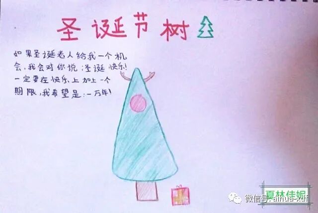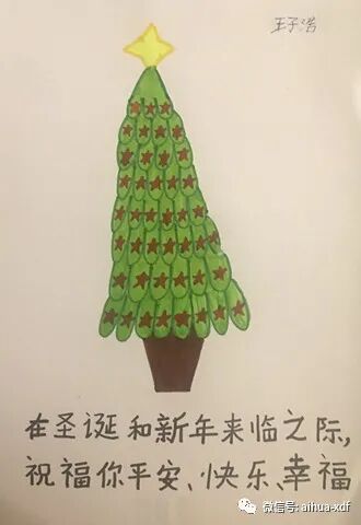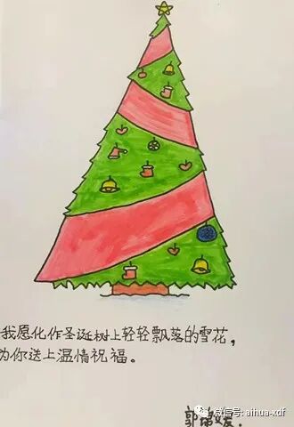 又是一年一度的圣诞节,孩子们喜欢的节日。看着超市里花花绿绿的圣诞树,我想着让我班孩子回家也设计一棵圣诞树,并写一句圣诞的祝福语。当我把这个作业布置给他们的时候,孩子们特别兴奋,有的问我该用什么画笔,有的问我该用多大的纸,还有的问我能不能用电脑设计一幅画呢?答案当然是肯定的!