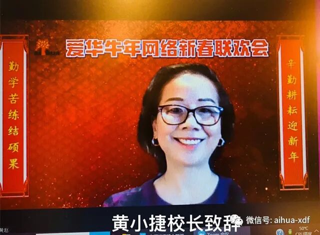 黄校长还为能通过网络方式让爱华学子们欢聚一堂开心过大年而感到高兴,并鼓励同学们:“疫情虽然还很严重,但我相信:没有一个冬天不会结束,也没有一个春天不会到来。只要我们注意防御,不停止学习的脚步,继续努力学习,就能收获更加丰硕的成果。”