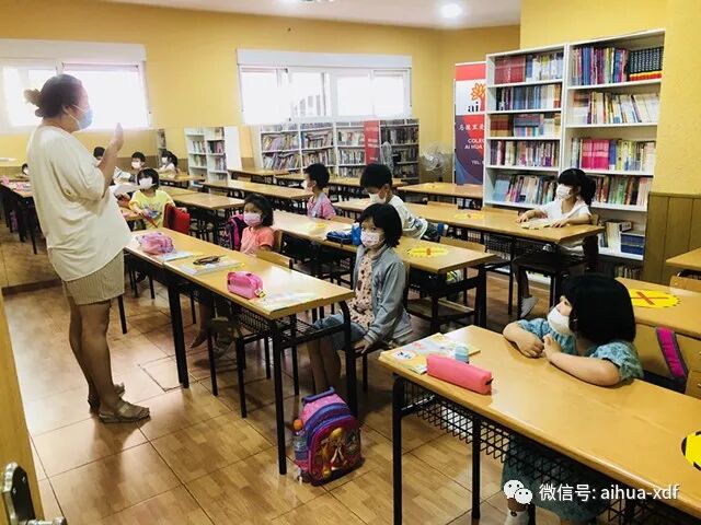 进入校门的程序和平时西班牙学校的一样,都是经过测体温、洗手后才能进校。踏进整理一新的教室,大部分同学并不感到陌生,因为在刚刚结束的暑期班,他们曾经在新规划的教室里愉快学习了两个月。