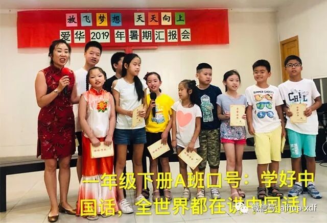 炎炎夏日抵挡不住爱华学子们学习语言和才能的高涨热情。两个月暑假班即将接近尾声,为展示各班学生成绩和风采,同时也为了纪念中华人民共和国诞辰七十周年,8月24日星期三上午,爱华暑假班的师生们欢聚一堂,一场“放飞梦想,天天向上—2019年暑期班学习汇报会”在孩子和家长的欢声笑语中拉开帷幕。