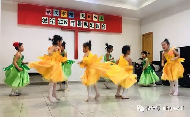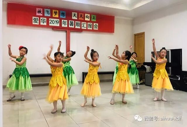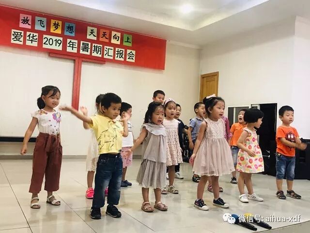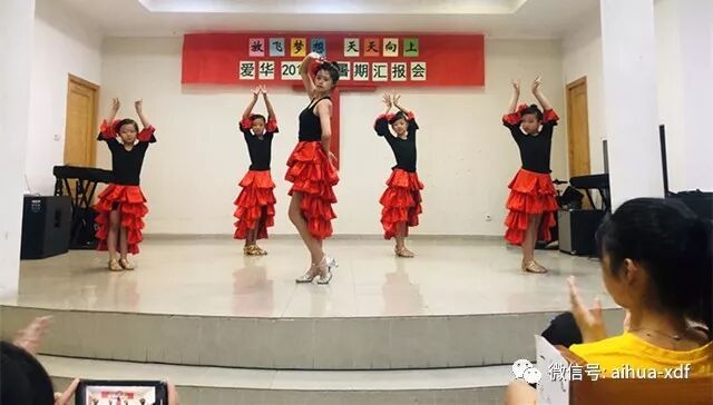 今年暑假班汇报会的节目可谓是丰富多彩,而且表演水平也有了明显的提升。第一个上场的是舞蹈小班的小同学们。紧接着是学前班的小不点们,他们一边念着“爱华学校是我家,老师爱我我爱她;你的家,我的家,老师就像好妈妈!”,一边可爱的舞蹈着,动作和姿势格外喜乐逗人。