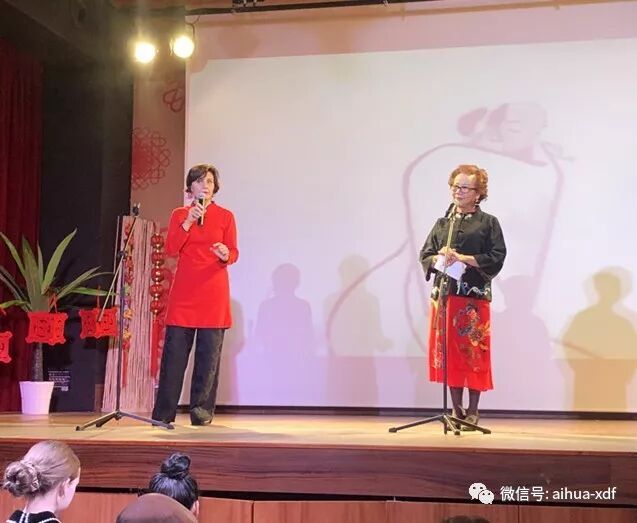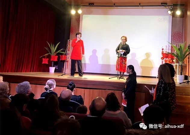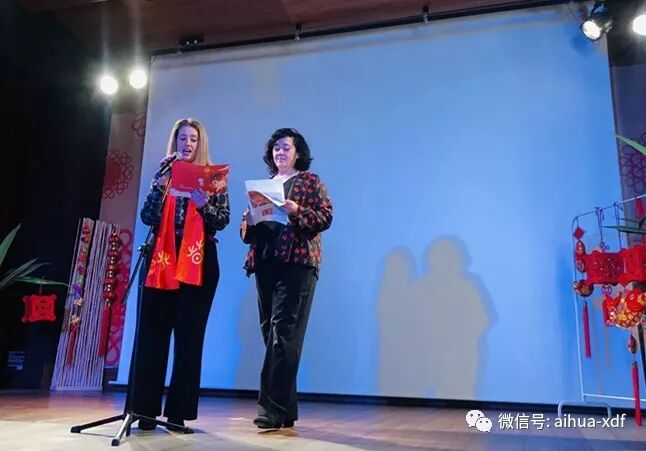 春节联欢会由成人汉语班的Carolina y Nuria等六位汉语学生身着旗袍和唐装轮流上台主持。当喜庆的过大年音乐响起后,两位主持人便带着微笑自信地出场,他们俩用中西文宣布开始,并请出了马德里文化中心汉语教学培训方—新东方文化学院负责人黄小捷和马若兰两位副院长致词。