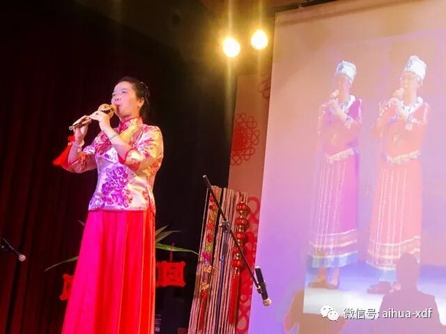 紧接着,精彩的文娱演出就开始了。学生主持人用流畅的汉语,首先请出了来自北京的葫芦丝演奏家秦晓秀老师,于是,一曲优美抒情的云南名曲“月光下的凤尾竹”拉开了联欢会序幕。