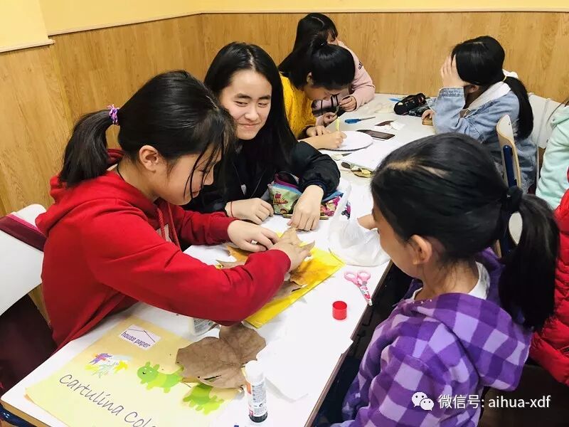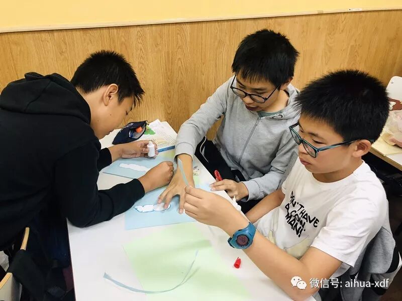 最后,张巍老师用一段航拍的秋景视频结束了今天的讲课内容,接下来就是同学们自己动手展示心目中的秋天美景了。于是,同学们把早早就准备好了的落叶、彩纸等物品拿出来,分成好多个小组,大家津津有味地开始描绘秋天了。