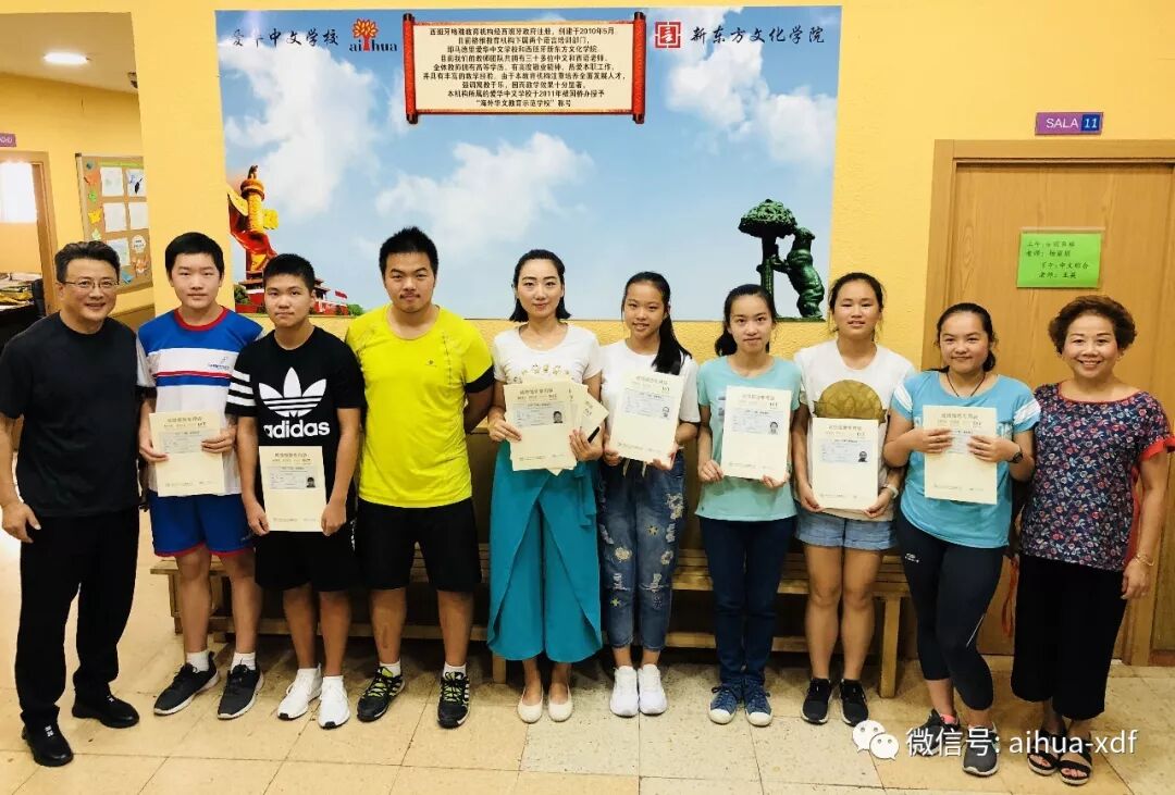 今年六月份,我带着爱华A-6班初二年级十二位学生去马德里汉办代表处,参加HSK官方汉语水平考试。令我感到无比欣慰的是我的学生全体通过了考试,其中,11人获得了六级HSK证书,一人获得五级证书。当同学们手捧汉语水平测试证书时,自豪与快乐的喜悦之情溢于言表。