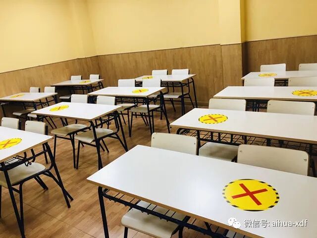 今年爱华暑期班采取了线上线下同步开课的形式,为了针对疫情做好切实的防范工作,早在两个月前,爱华负责教务的老师们就采购了额温枪、免洗洗手液、示意桌贴、示意地贴、消毒液等,全力做好上课期间的防疫工作。