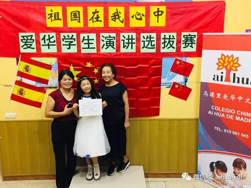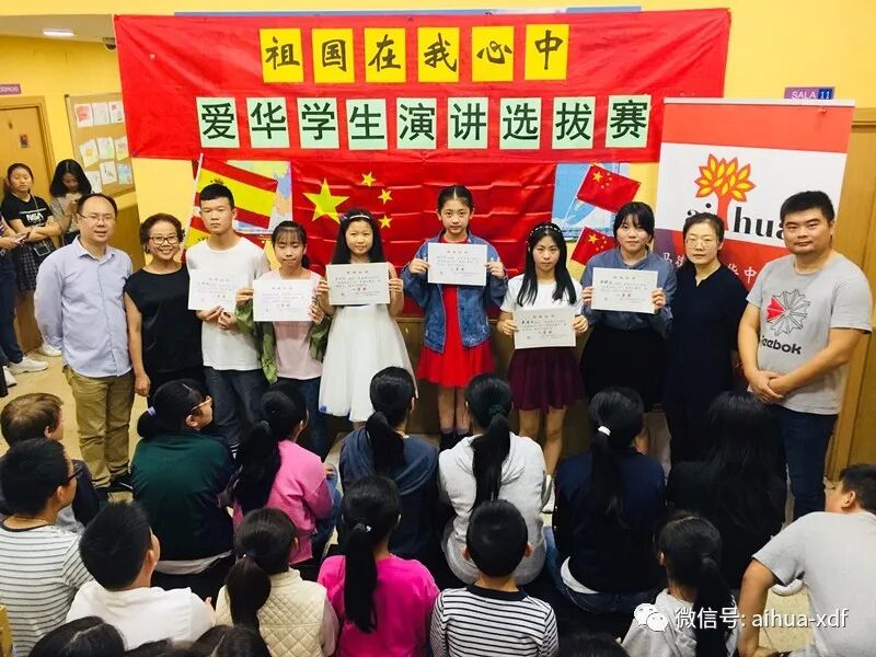 最终,罗梓珺、徐妮妮和张睿妍分别获得低龄组一、二、三等奖;薛静怡、董姝亚和王祎俊分别获得少年组一、二、三等奖,并同时选拔出了七位选手参加即将在马德里举行的华裔学生“我是超级演说家”比赛,他们是:爱华USERA校区的张睿妍、薛静怡、董姝亚、叶锦翔和爱华SAN FERMIN校区的罗梓珺、徐妮妮和王祎俊。