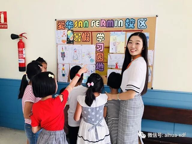 爱华SAN FERMIN校区杜祥乐老师和她的一年级学生