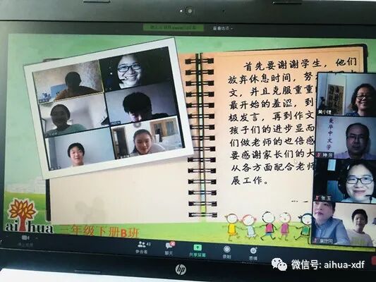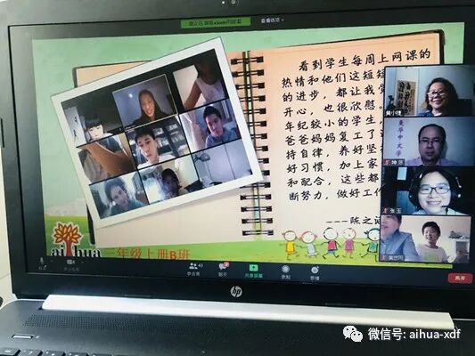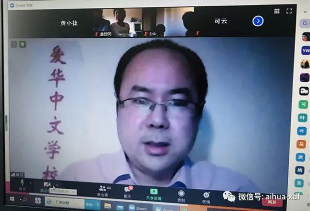 紧接着,周六网课的张玉老师作为爱华网课教师团队的优秀代表作了发言。爱华网课的老师们个个敬业用心,循循善诱、勇于创新,深受孩子们的喜爱,尤其是通过丰富多彩的PPT课件和具有吸引力的教学手段,让学生们学有所获。张玉老师作为爱华网课教师团队的代表,从不同的角度分享了自己的教学体会和对孩子们的热切期望。
