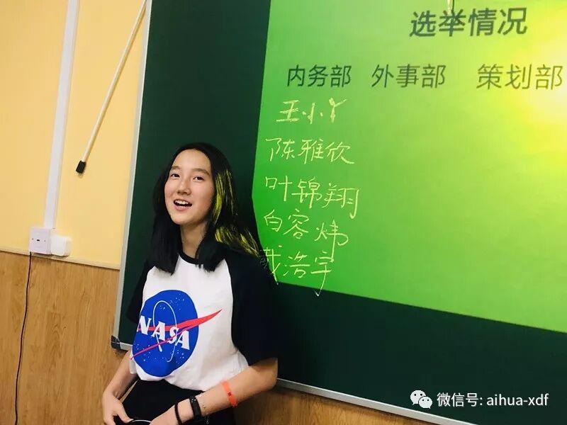 最后竞选的是学生会主席和副主席两个职务,潘彬至和陈雅欣两位同学不负众望,成为了爱华历史上首届学生会的主席和副主席。值得一提的是,潘彬至同学对此次的竞选高度重视,非但提前几个星期做了准备,并且还详细撰写了演讲稿。潘主席的演讲稿引经据典,非但引用了拿破仑等名人的名言名句,还结合自身实力打动了在场大部分的同学。