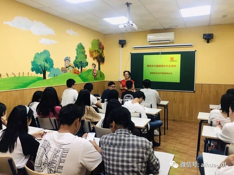 爱华中文学校校长黄小捷老师首先代表学校致辞,黄老师首先表示非常欣慰,本来以为同学们年级高了,在西班牙学校的学习任务繁重,可能不会有时间才参与学生会的活动,但是没想到今天来参加学生会的同学们把大教室都坐满了,而且座位还不够,甚至有些已经毕业了的学生们都闻讯前来,可见同学们是真正热爱这个学校,互相之间也有了深厚的友情。